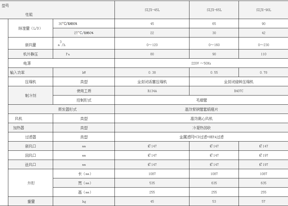 單向流新風除濕系統(tǒng)SZJX-45L/65L/90L
